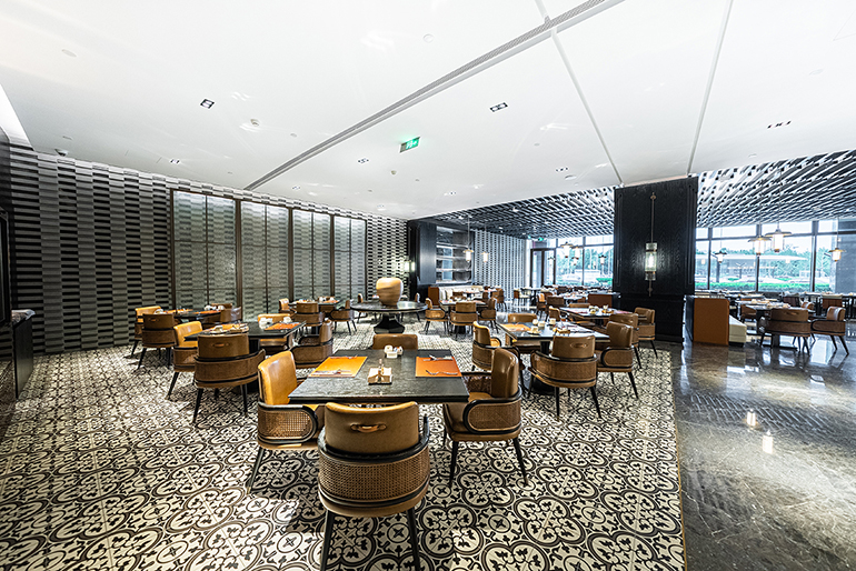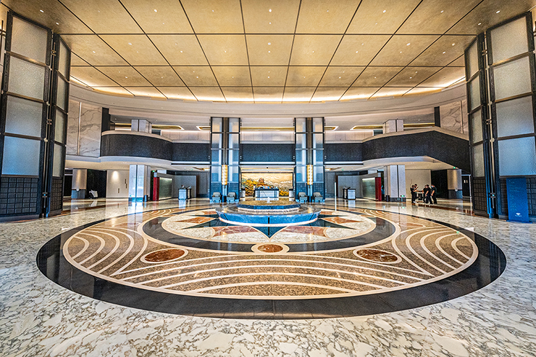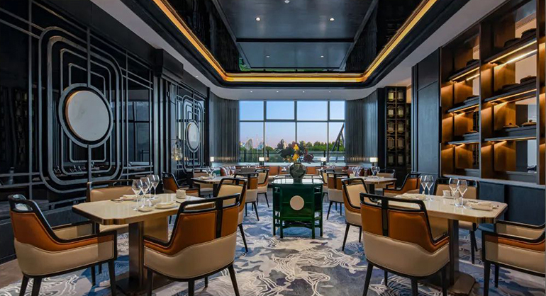 这是一座无法批量施工的项目:气势恢宏的无柱宴会厅、素洁静雅的辰山中餐厅、中西合璧的新福席特色餐厅……每个空间都有其独特的美学蕴含,仅在港源施工范围内的空间就涉及