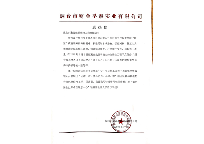 烟台海上世界表扬信