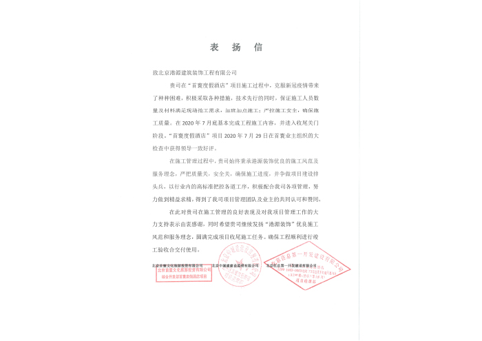 首寰表扬信