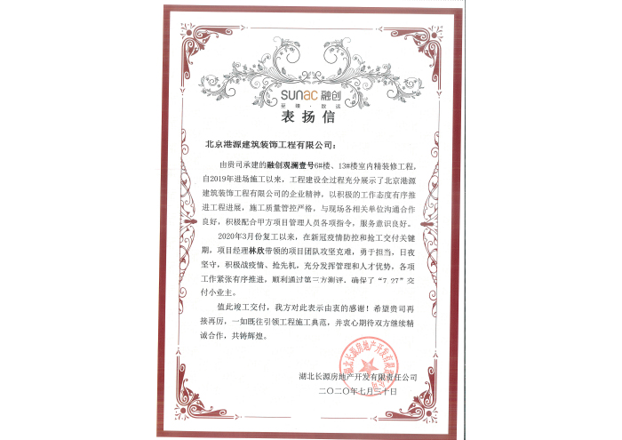 西安融创感谢信