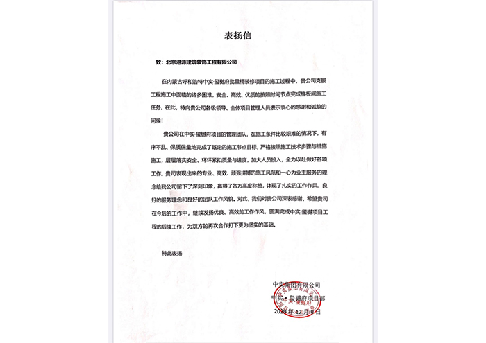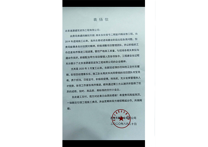 双铁城项目-表扬信