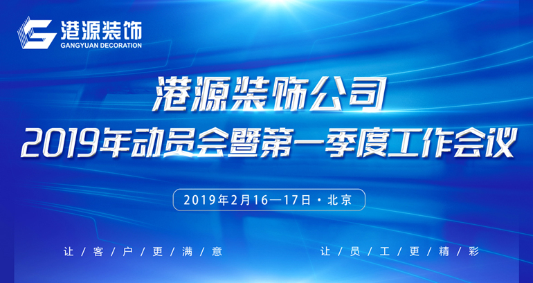 2019年2月16-17日,港源装饰在北京总部召开2019年动员会暨第一季度工作会议。江河集团总裁许兴利率集团副总裁兼财务总监赵世东、集团