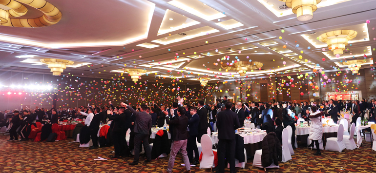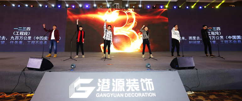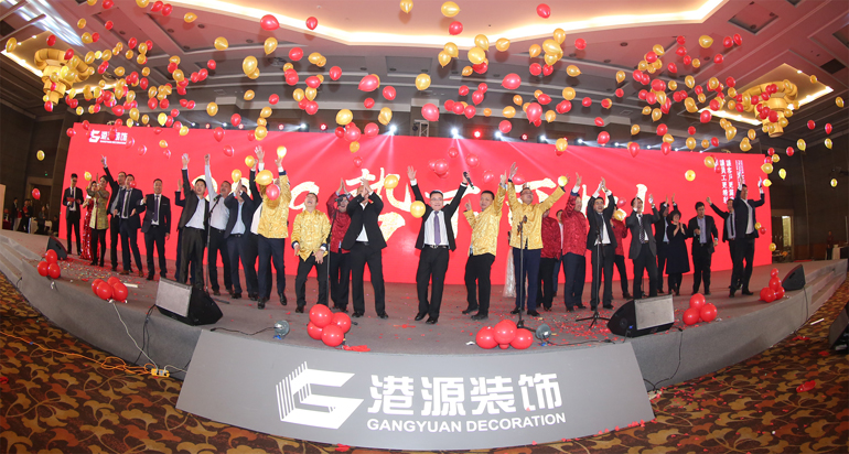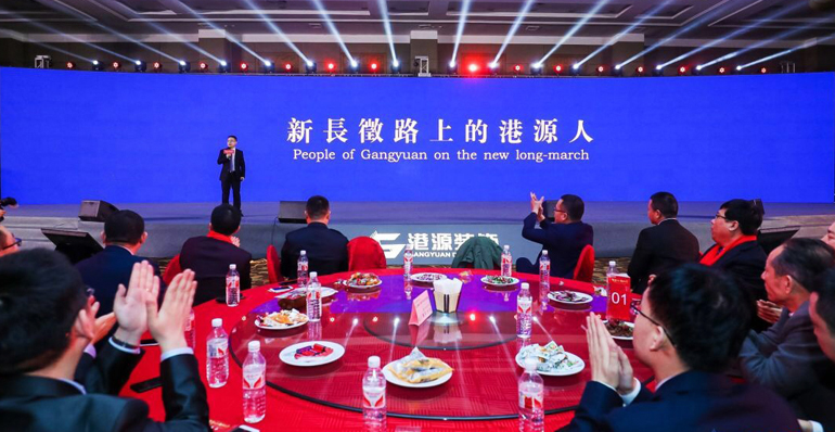 当天,公司以这次年度聚会为契机,把分布于全国25个地区的全体港源人召集“回家”,一起吃了一顿港源装饰的年夜饭。