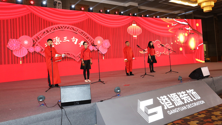 年会结束后,精彩纷呈的迎春联欢晚会拉开了帷幕。晚会上,13个文艺节目均由港源装饰各单位选送。