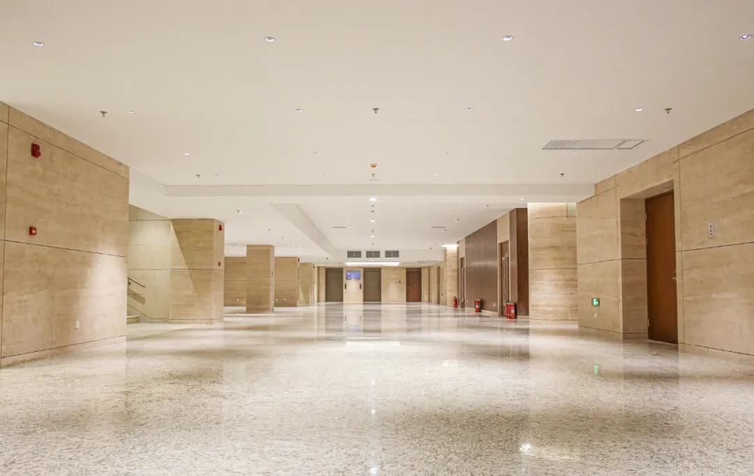 中国第一历史档案馆新馆室内精装涉及大量的、多种类型的石材拼贴。港源装饰项目团队凭借丰富的内装施工经验,提前制定完善的防范预案,