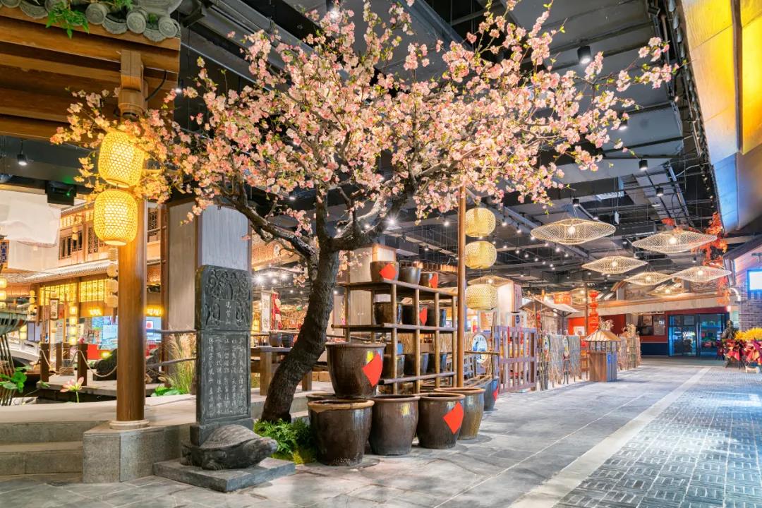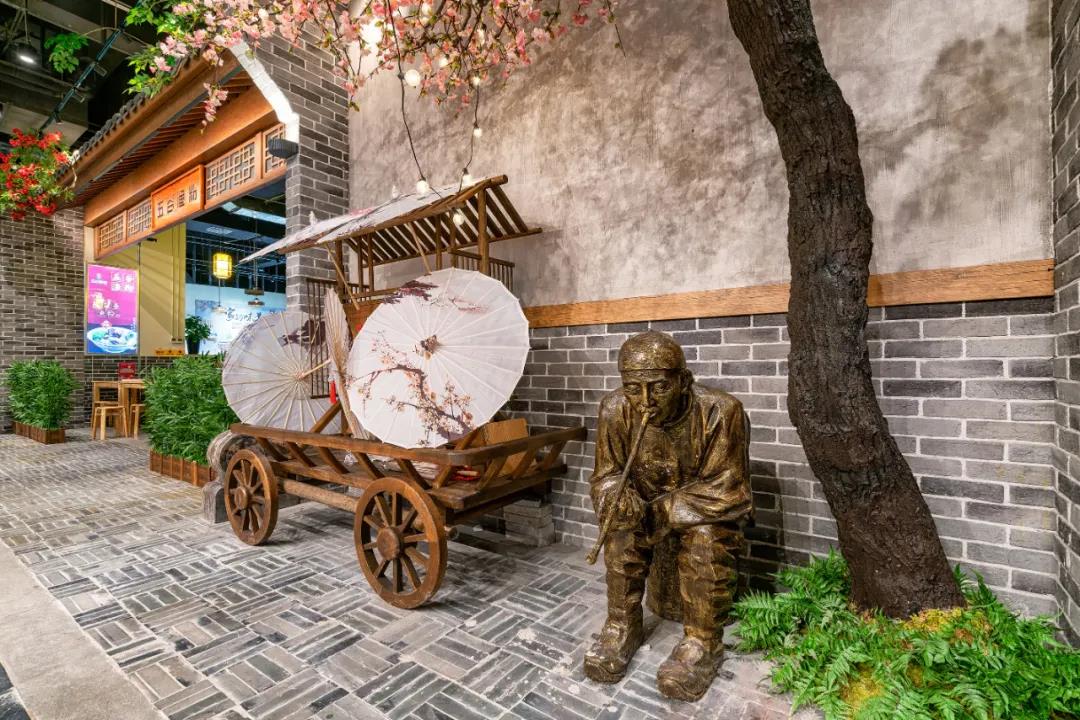 在『铜鞮巷』美食街施工过程中,港源团队为了重现千年前的人文环境,制作仿古部件及石材时毅然决定寻找老工匠手工订制雕刻,为42座铺面分别呈现不同的主题风格,以此展现出“一店一品一特色”的街区风貌。